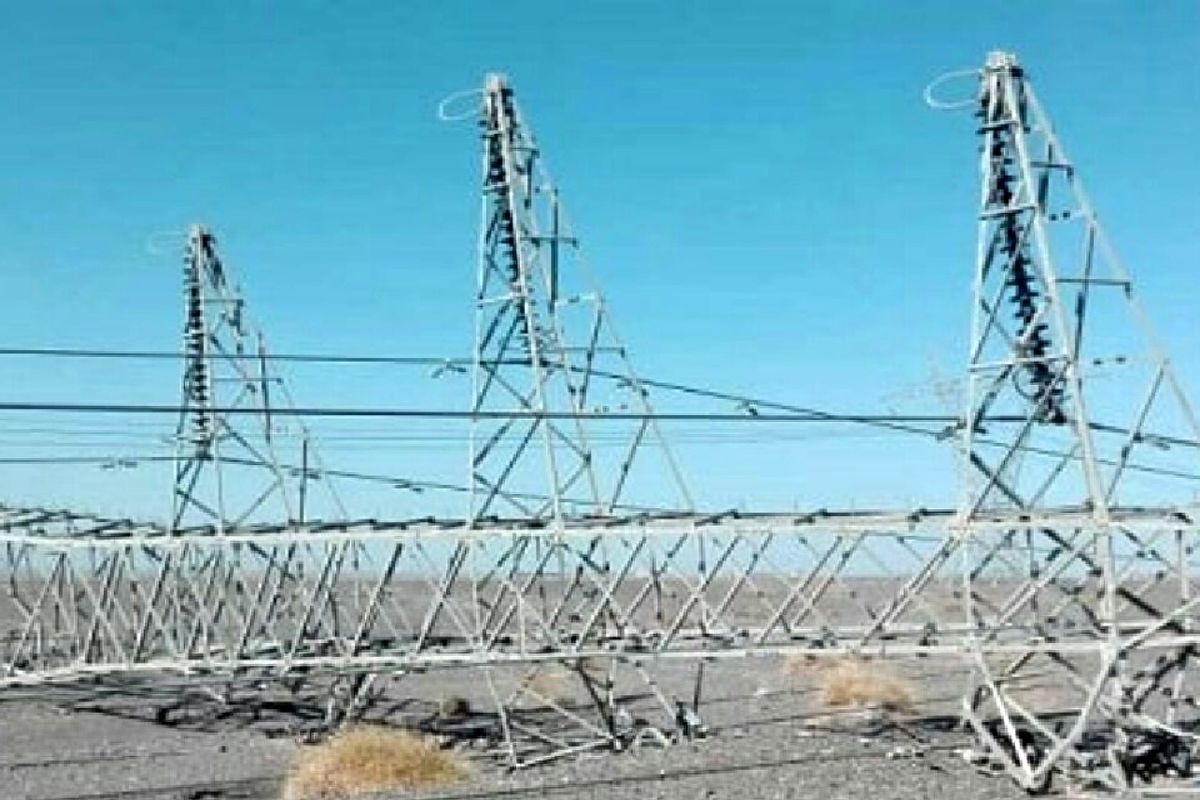 سقوط سه دکل برق براثر سرقت در محور زاهدان - بم