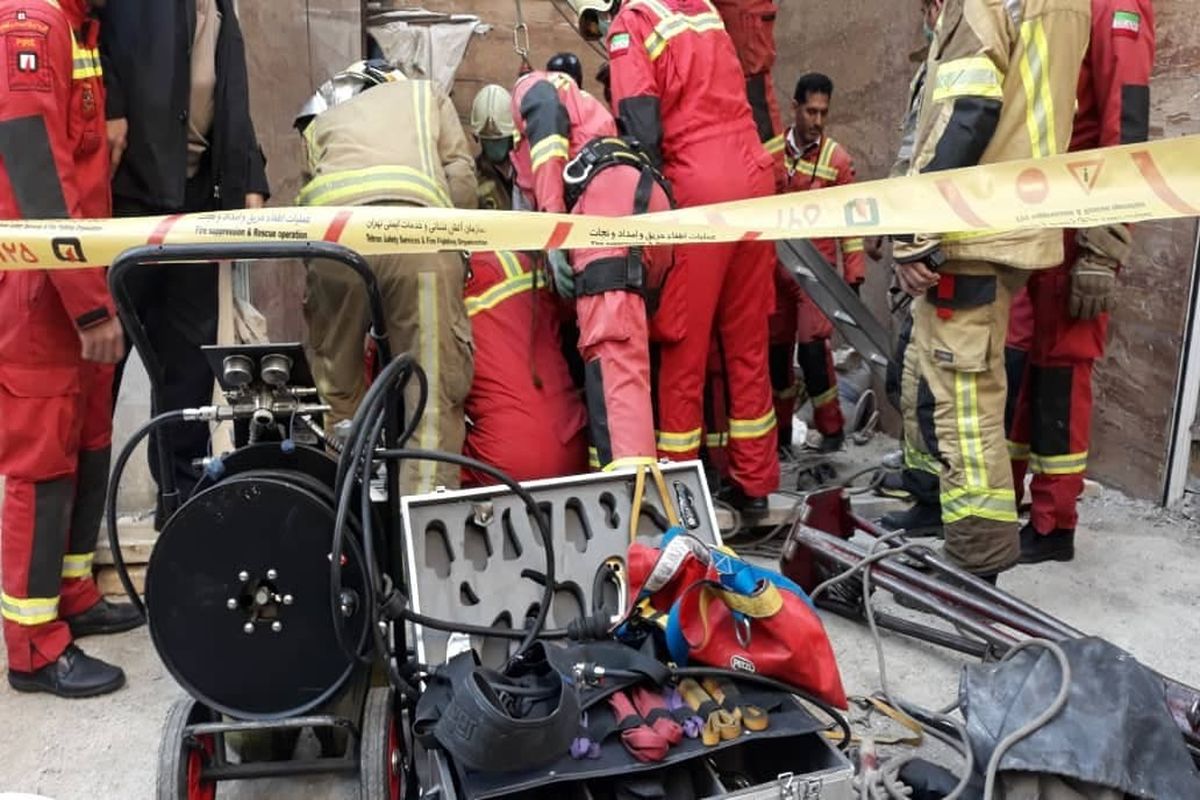 گرفتار شدن کارگر جوان در داخل چاه ساختمانی خیابان سبلان تهران+ عکس