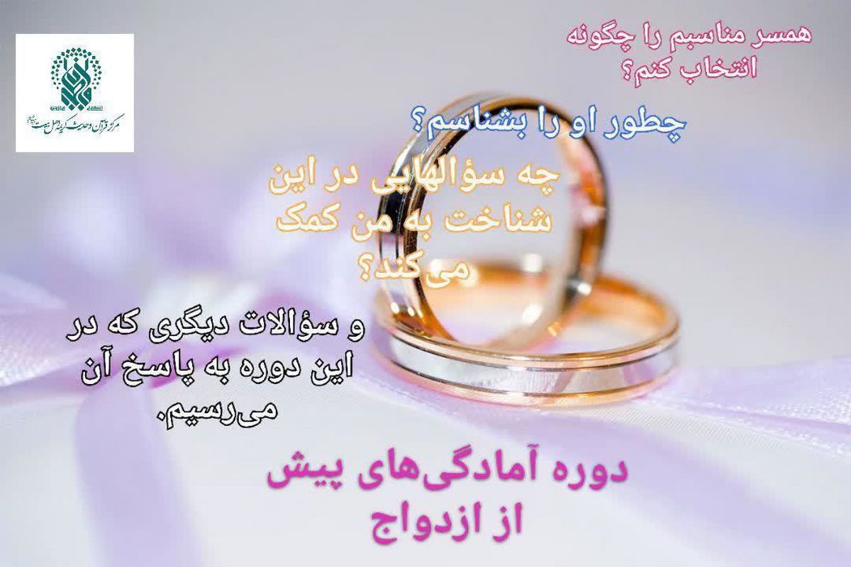 واحد خواهران مرکز قرآن و حدیث کریمه اهل بیت علیه السلام در راستای ترویج فرهنگ انتخاب درست همسر به هنگام ازدواج و ترویج فرهنگ انتخاب عاقلانه و درست همسر در میان زوجهای جوان به ویژه دختران در آستانه ازدواج همزمان با تابستان دوره آموزشی آمادگیهای پیش از ازدواج را ویژه بانوان در آستان مقدس حضرت معصومه سلام الله علیها برگزار میکند.