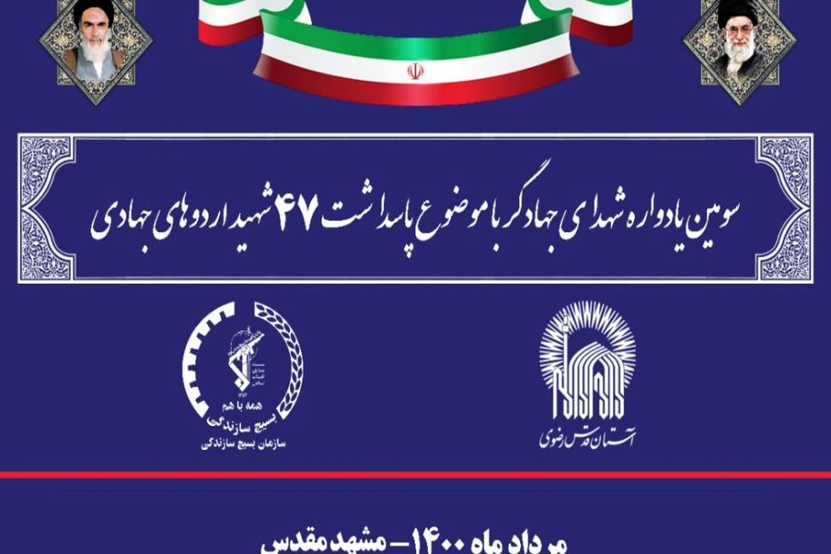 به گزارش برنا؛ سومین یادواره شهدای جهادگر با موضوع پاسداشت 47 شهید اردوهای جهادی با عنوان «جهادگران آسمانی» در 10 مرداد ماه سال 1400-حرم امام رضا (ع) در استان خراسان رضوی برگزار می شود.