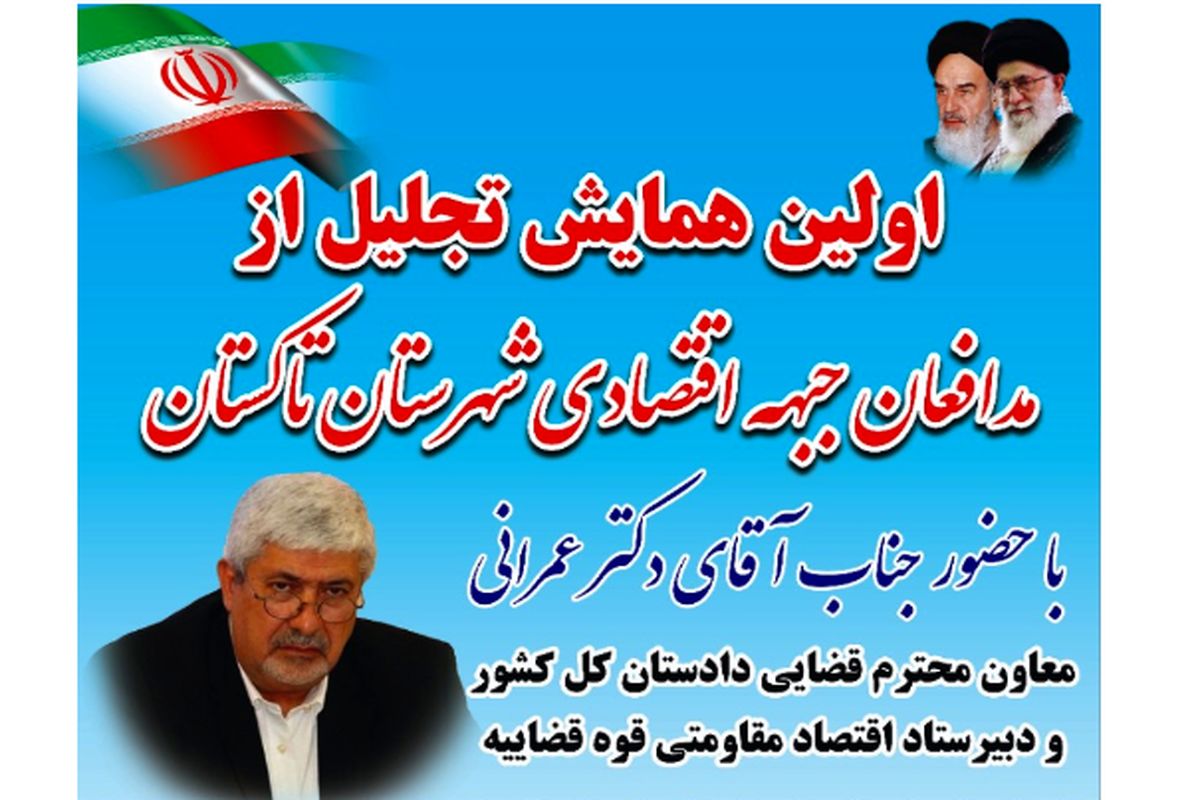 اولین همایش تجلیل از مدافعان جبهه اقتصادی فردا با حضور معاون قضایی دادستان کل کشور در تاکستان برگزار می شود.