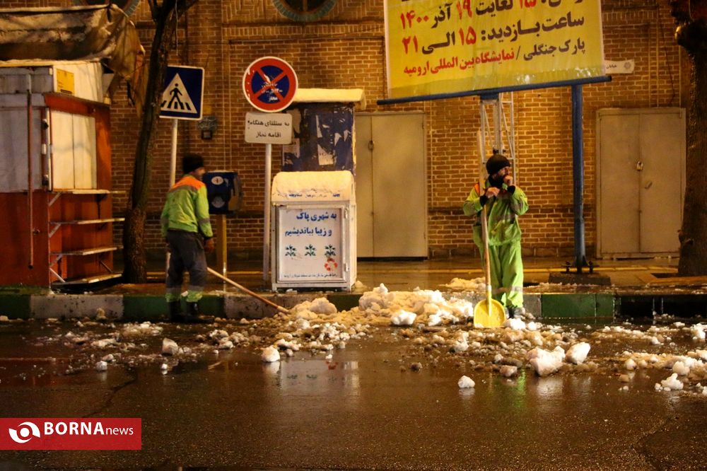 پس از بارش چندین ساعته برف در سطح شهر ارومیه عوامل شهرداری تمامی معابر اصلی را بازگشایی نمودند.