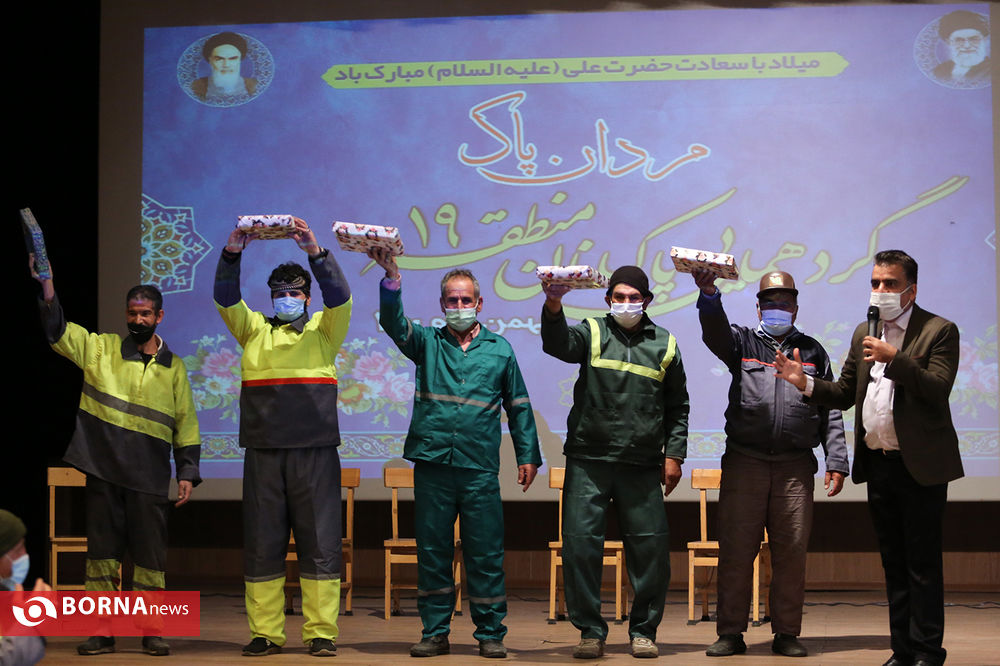 گردهمایی پاکبان های منطقه ١٩ ( مردان پاک ) به مناسبت میلاد حضرت علی علیه السلام ، با حضور مهدی هدایت شهردار منطقه ١٩ و جمعی از پاکبان ها ،صبح امروز در سالن استاد شهریار بوستان ولایت برگزار شد .