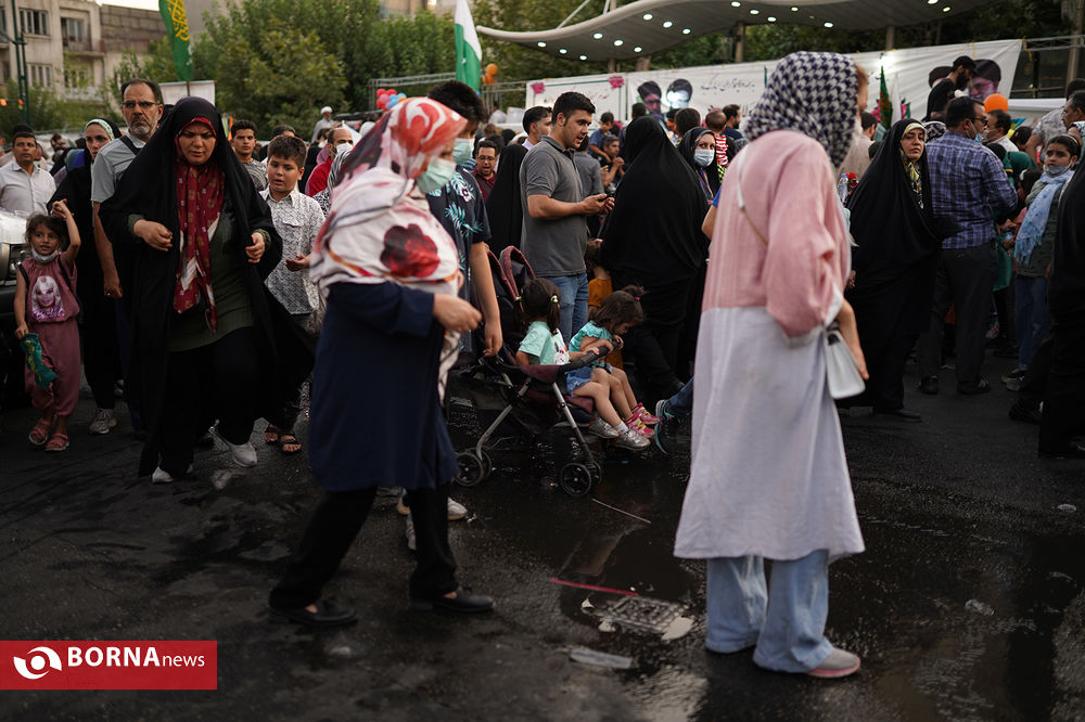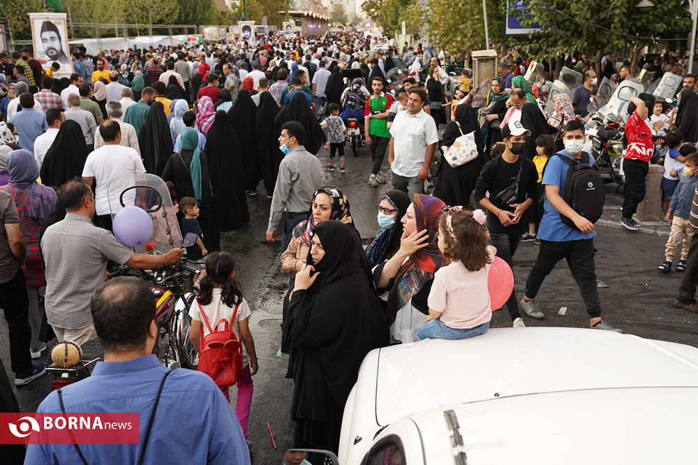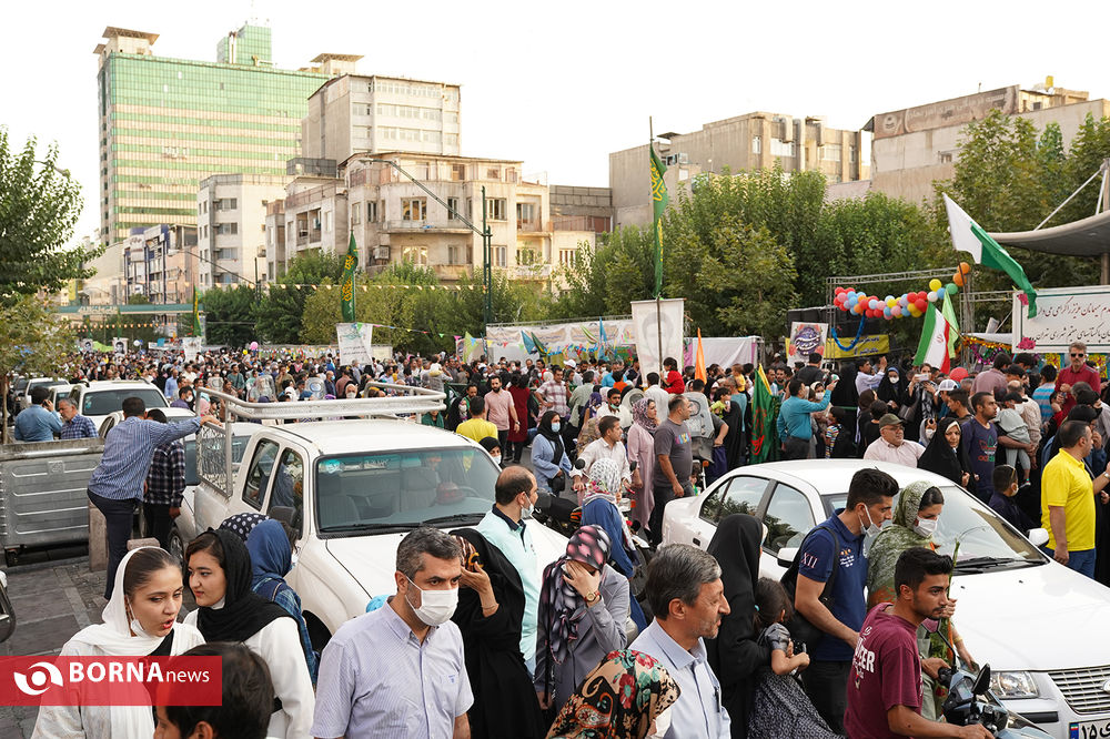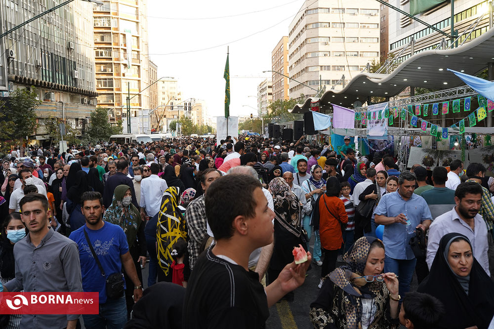 مهمانی ۱۰ کیلومتری به مناسبت عید سعید غدیر خم از چهارراه ولیعصر تا چهارراه پارک وی تهران برگزار شد. ( این گزارش تصویری در محدوده چهار راه ولیعصر تا میدان ولیعصر عکاسی شده است )