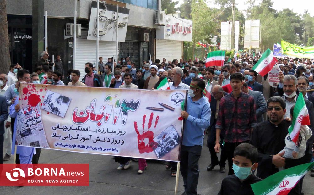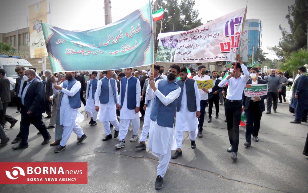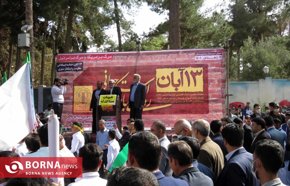 راهپیمایی ۱۳ آبان با حضور اقشار مختلف مردم در نقاط مختلف زاهدان برگزار شد.