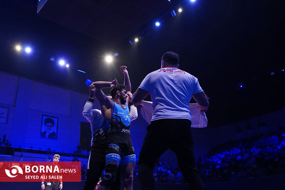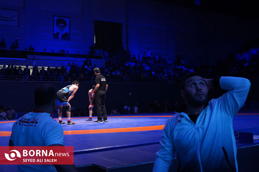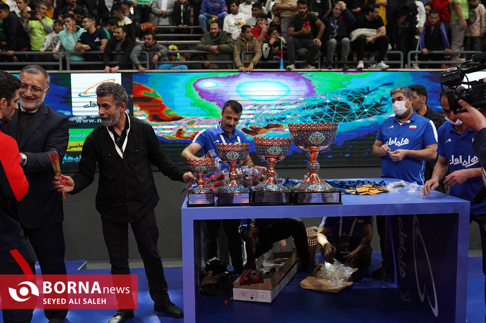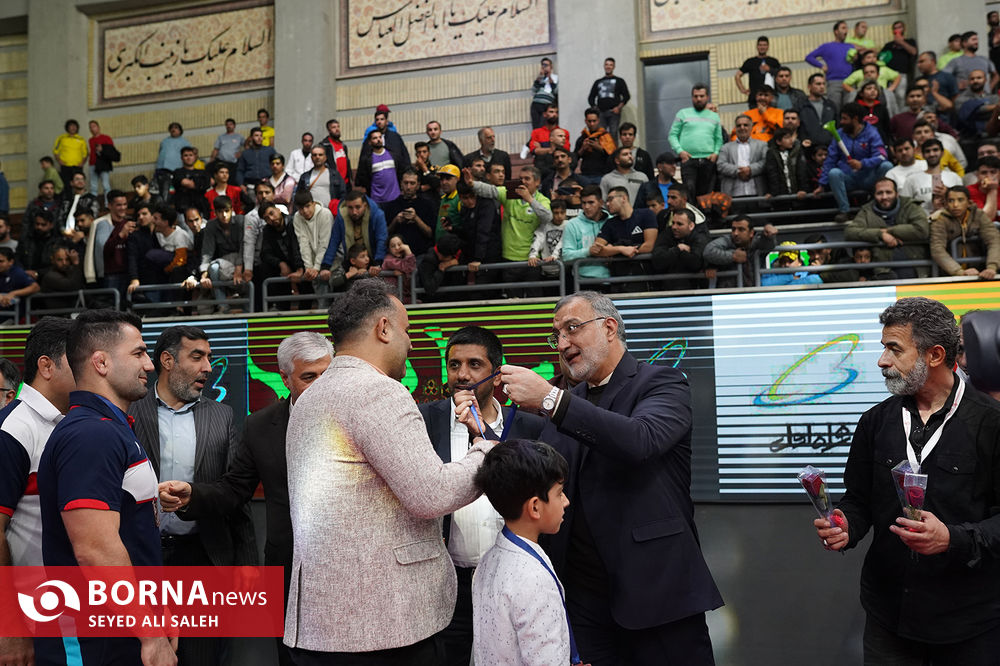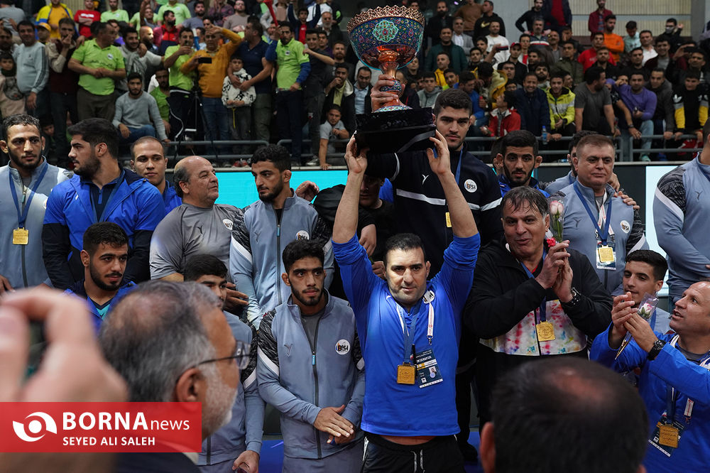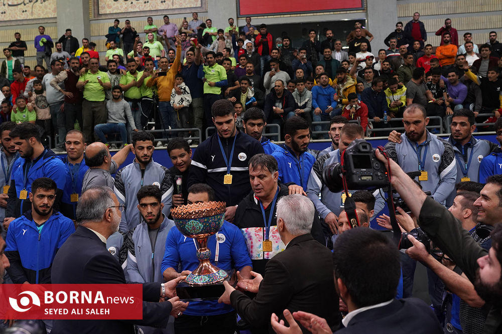 فینال لیگ برتر کشتی آزاد در سالن هفتم تیر تهران، تیم های پتروپالایش تاکستان و بانک شهر به مصاف هم رفتند که در پایان تیم تاکستان در یک جدال دیدنی به پیروزی رسید.