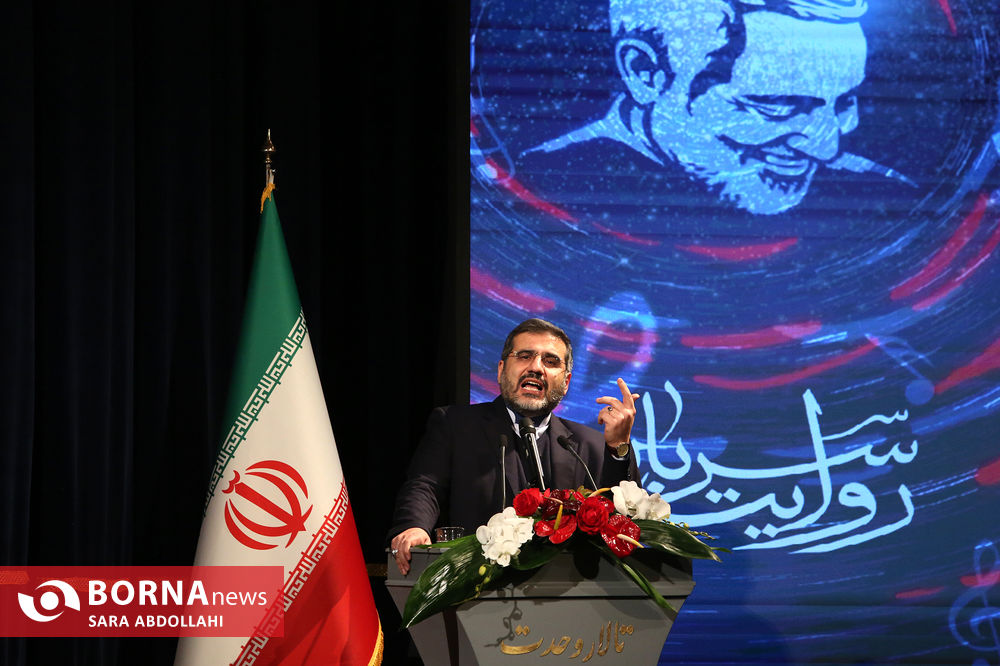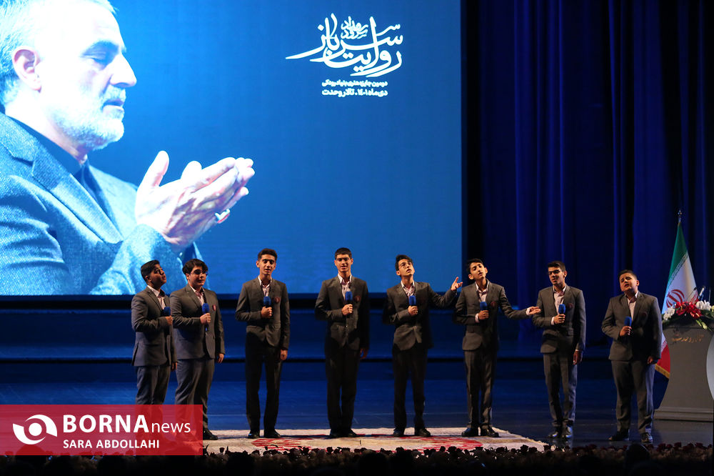 مراسم رویداد سرود روایت سرباز " دومین جایزه هنری بنیاد رودکی" به مناسبت سومین سالگرد شهید حاج قاسم سلیمانی با حضور محمدمهدی اسماعیلی وزیر فرهنگ و ارشاد و خانواده سردار سلیمانی در تالار وحدت برگزار شد .