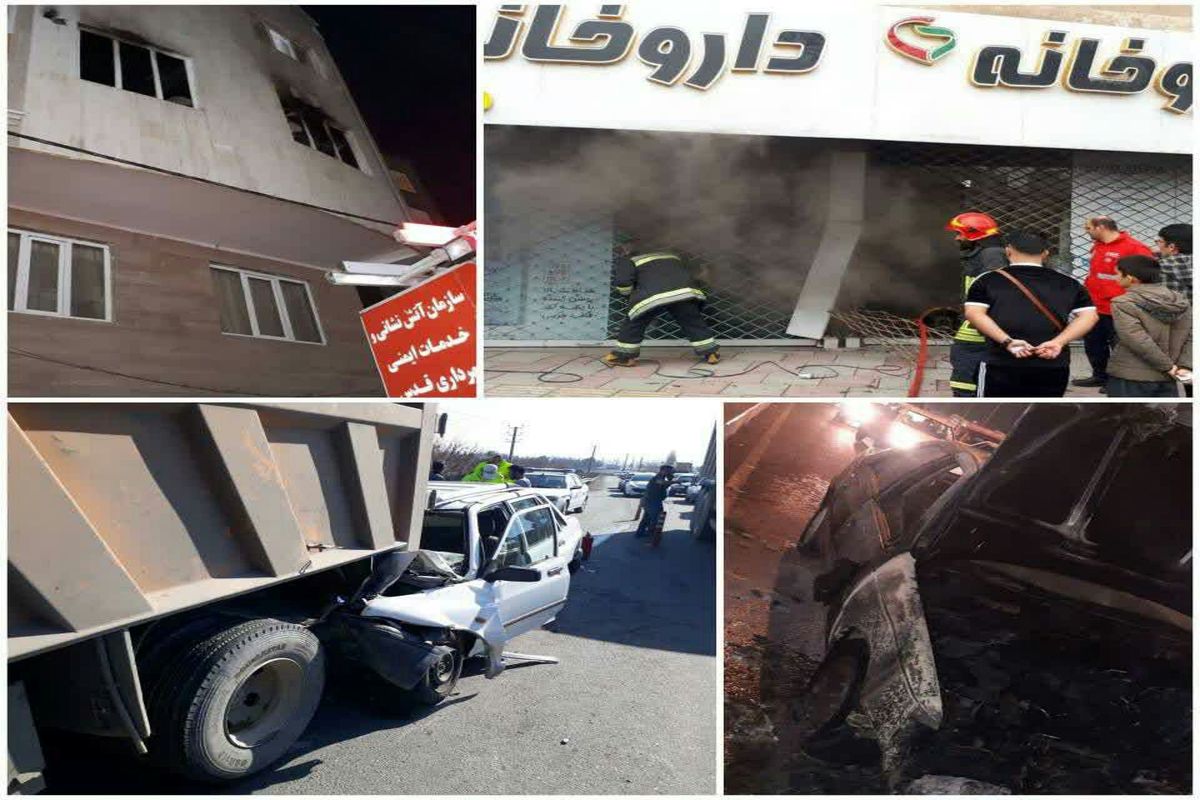 وی از وقوع ۴ حادثه آتش‌سوزی شامل حریق یک داروخانه، دو واحد منزل مسکونی و یک دستگاه خودروی سواری طی روزهای اخیر خبر داد و گفت: در تمامی این حوادث، نیروهای عملیاتی آتش‌نشانی در سریعترین زمان در محل حادثه حضور یافته و موفق به مهار آتش و جلوگیری از گسترش حریق به اماکن مجاور شدند. خوشبختانه حوادث مذکور تلفات جانی به همراه نداشته است.