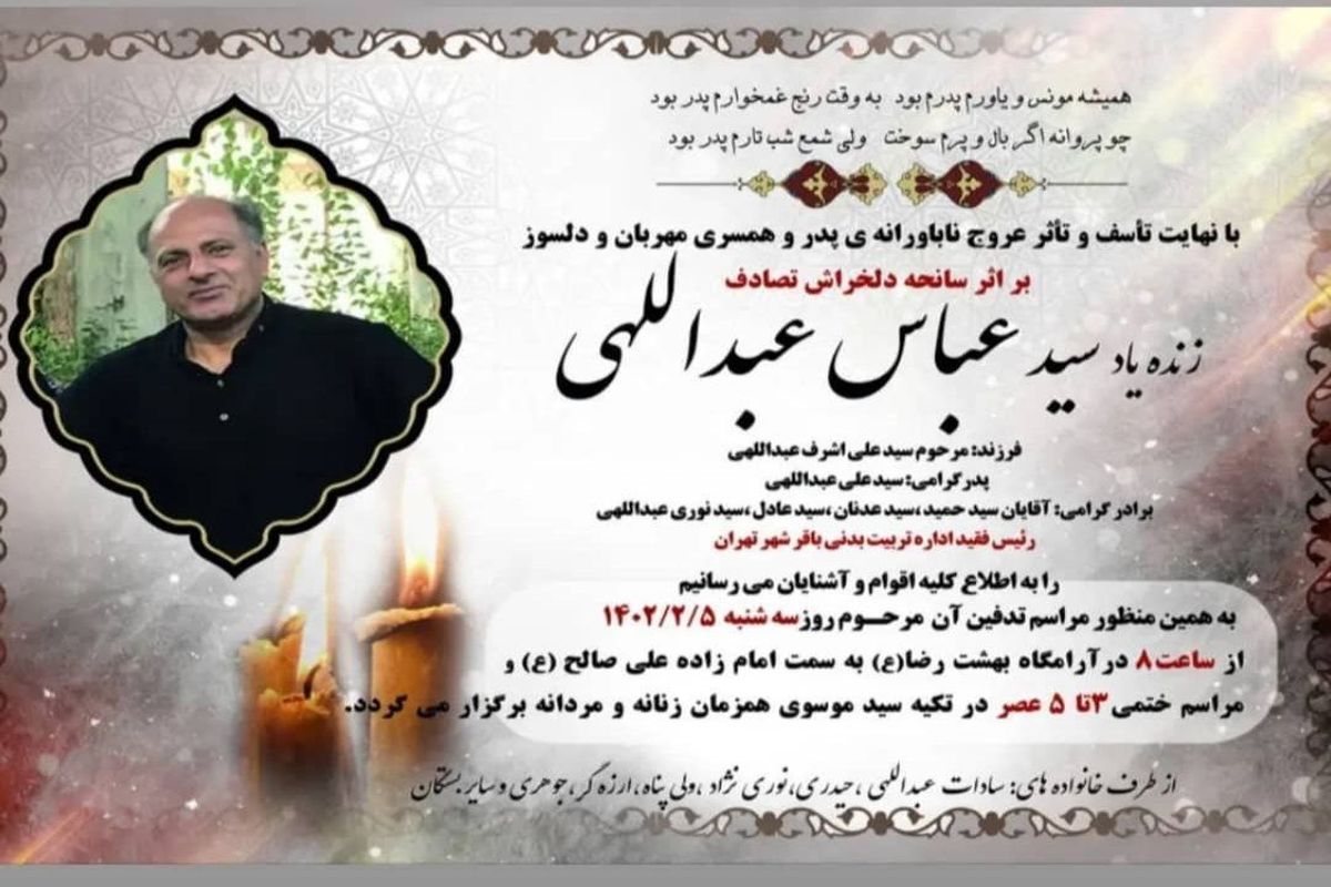 شهاب شهبازی مدیرکل ورزش و جوانان استان ایلام در پیامی درگذشت عباس عبدالهی پیشکسوت ورزش استان و از کارکنان اداره ورزش و جوانان استان را تسلیت گفت.