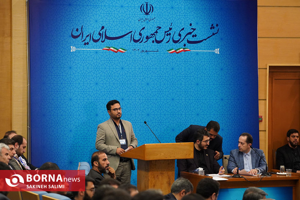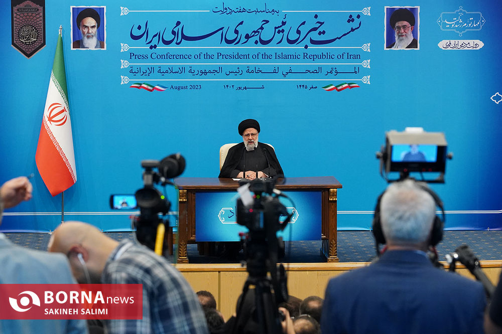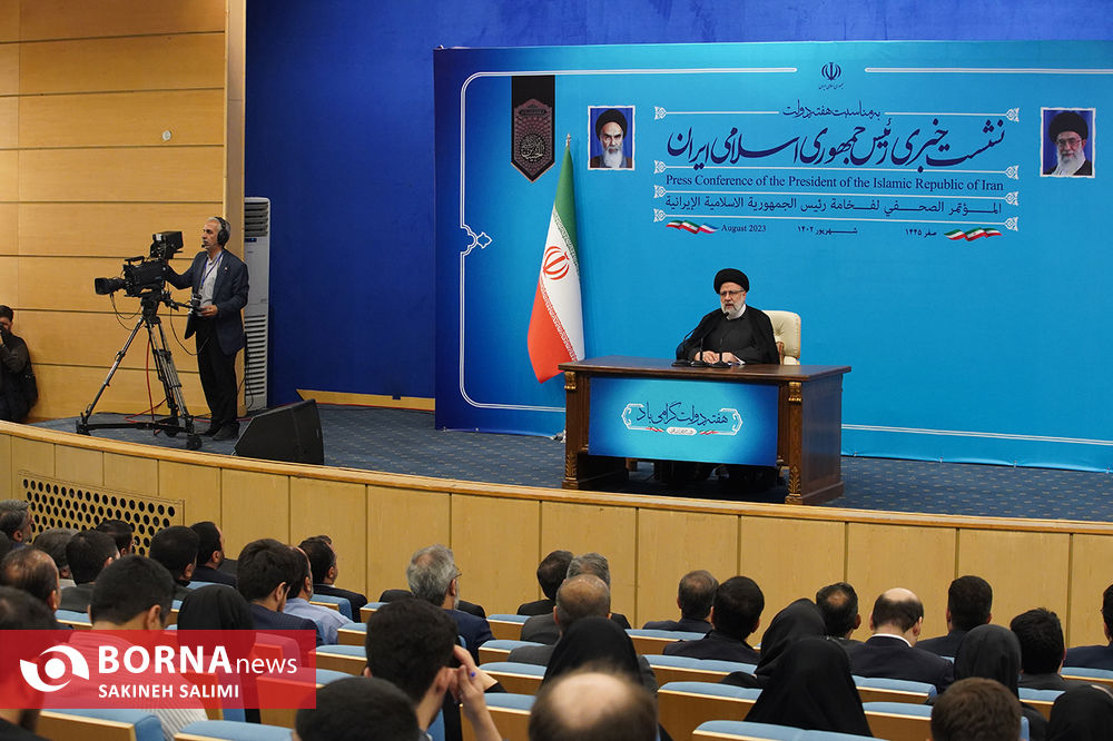 سومین نشست خبری سید ابراهیم رئیسی٬ رئیس جمهور صبح امروز در هفتمین روز از هفته دولت با حضور خبرنگاران، عکاسان و تصویربرداران داخلی و خارجی در سالن اجلاس سران برگزار شد.