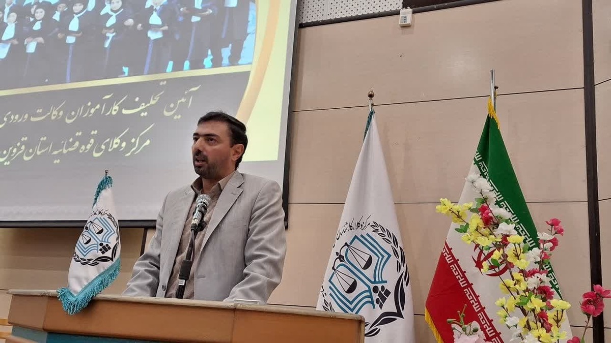 معاون توسعه و منابع انسانی دادگستری استان قزوین در ادامه با ابراز خرسندی از ورود کارآموزان به جرگه وکالت یاداورشد: شما باید پس از سوگندی که یاد کردید برای احقاق حق مردم وارد میدان شوید و در مسیر عدالت حقوقی و قضایی مشارکت کنید.