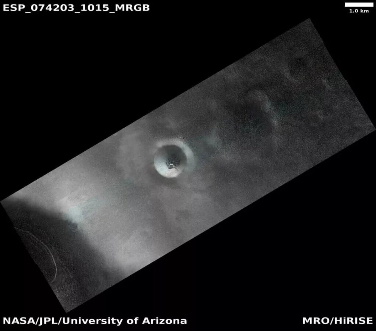 به گزارش برنا؛ تصویر ارائه‌شده توسط MRO با دوربین HiRise ابزار ناسا گرفته شده است. HiRise توسط یک تیم مستقر در «دانشگاه آریزونا» مدیریت می‌شود که تصاویر مهم آرشیو دوربین را بررسی می‌کند. در تصویر حاضر شاهد یکی از دهانه‌های مریخ با دو ویژگی قابل‌توجه هستیم.