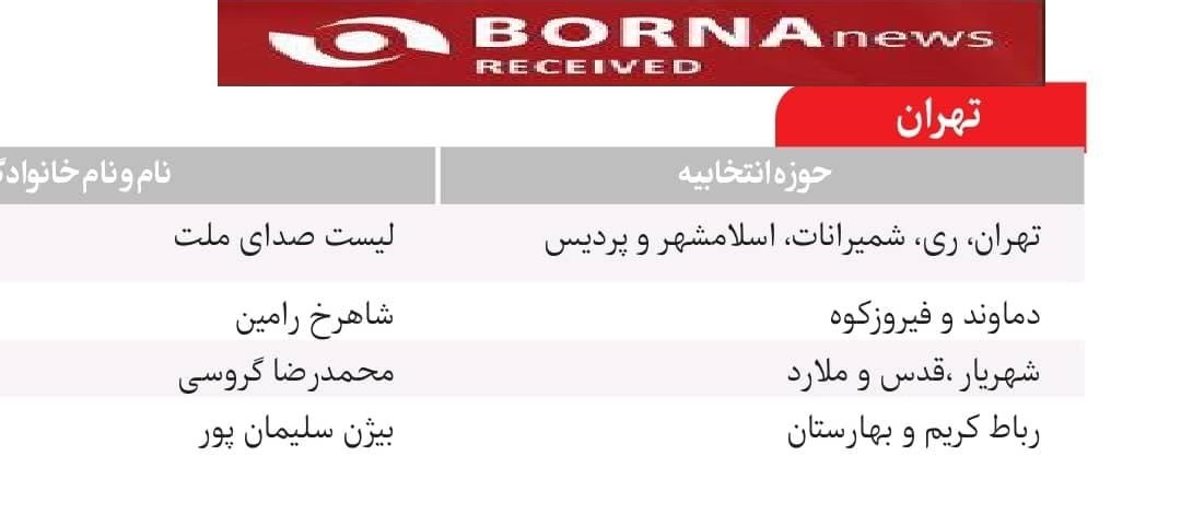 اعضای لیست «صدای ملت» در شهرستانهای تهران معرفی شدند