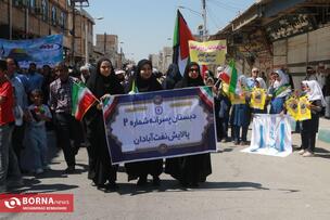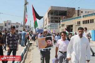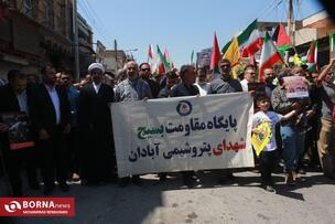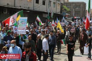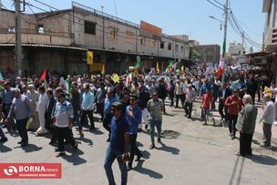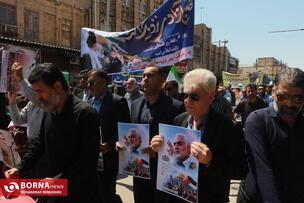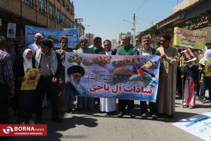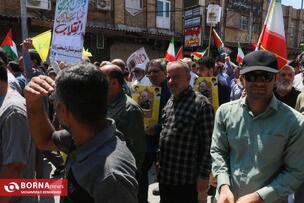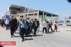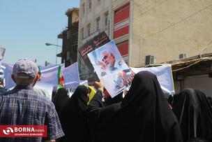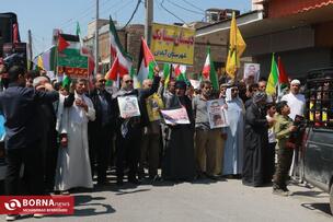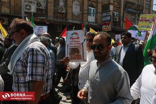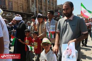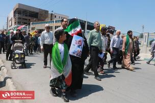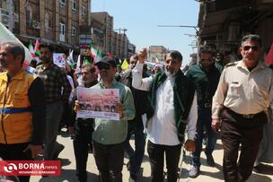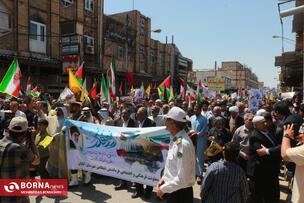 مردم ولایتمدار و روزه دار آبادان همگام با مسوولان، امروز ضمن حضور پر شور در راهپیمایی روز قدس، انزجار خود را از صهیونیسم جهانی اعلام کردند.