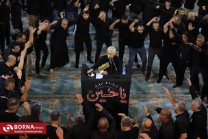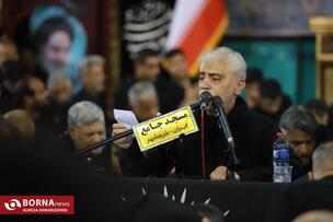 مراسم عزای حسینی شب عاشورا با حضور دلدادگان اباعبدالله و مداحی حاج حسین فخری در مسجد جامع خرمشهر برگزار شد.