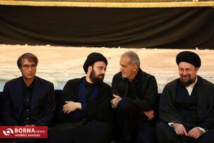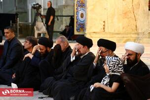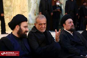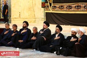 مراسم عزاداری شب عاشورای حسینی شامگاه دوشنبه (۲۵ تیر ۱۴۰۳) با حضور «سید حسن خمینی» تولیت حرم و «مسعود پزشکیان»، رئیس جمهور منتخب در حرم امام خمینی برگزار شد.