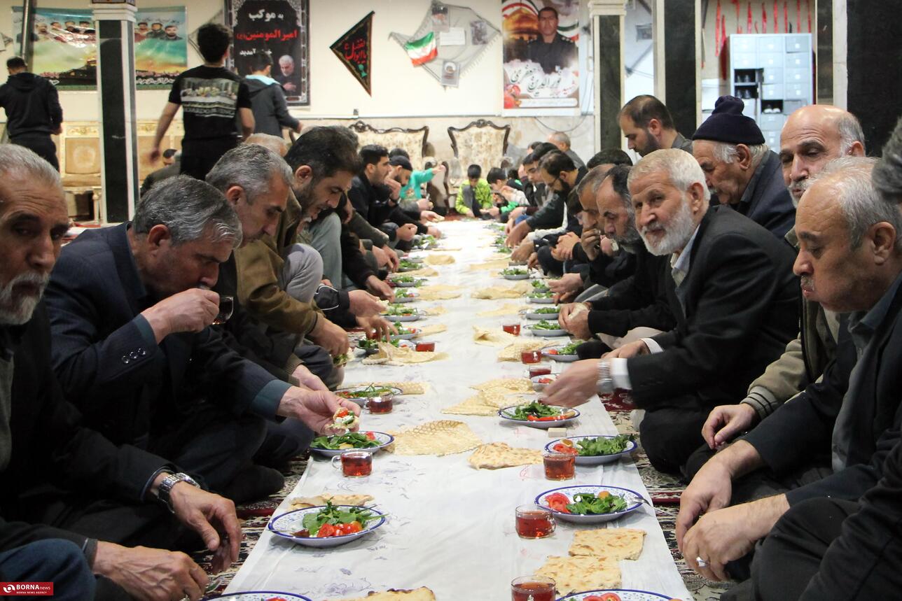جمعی از روزه‌داران کرمانشاهی میهمان سفره افطار ساده‌ای بودند که در حسینیه امیرالمؤمنین توسط مردم برپا شد.