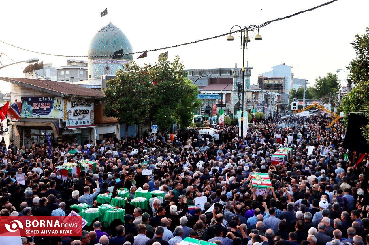مراسم تشییع پیکر پاک شهدای حمله متجاوزانه و تروریستی رژیم جعلی صهیونیستی به شهروندان بی گناه آستانه اشرفیه با حضور گسترده مردم شهید پرور در آستانه اشرفیه برگزار شد.