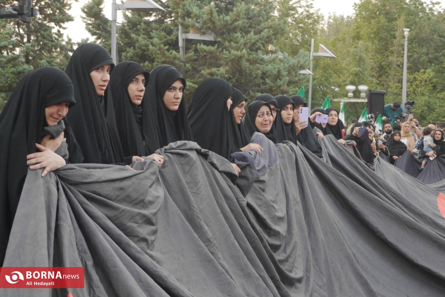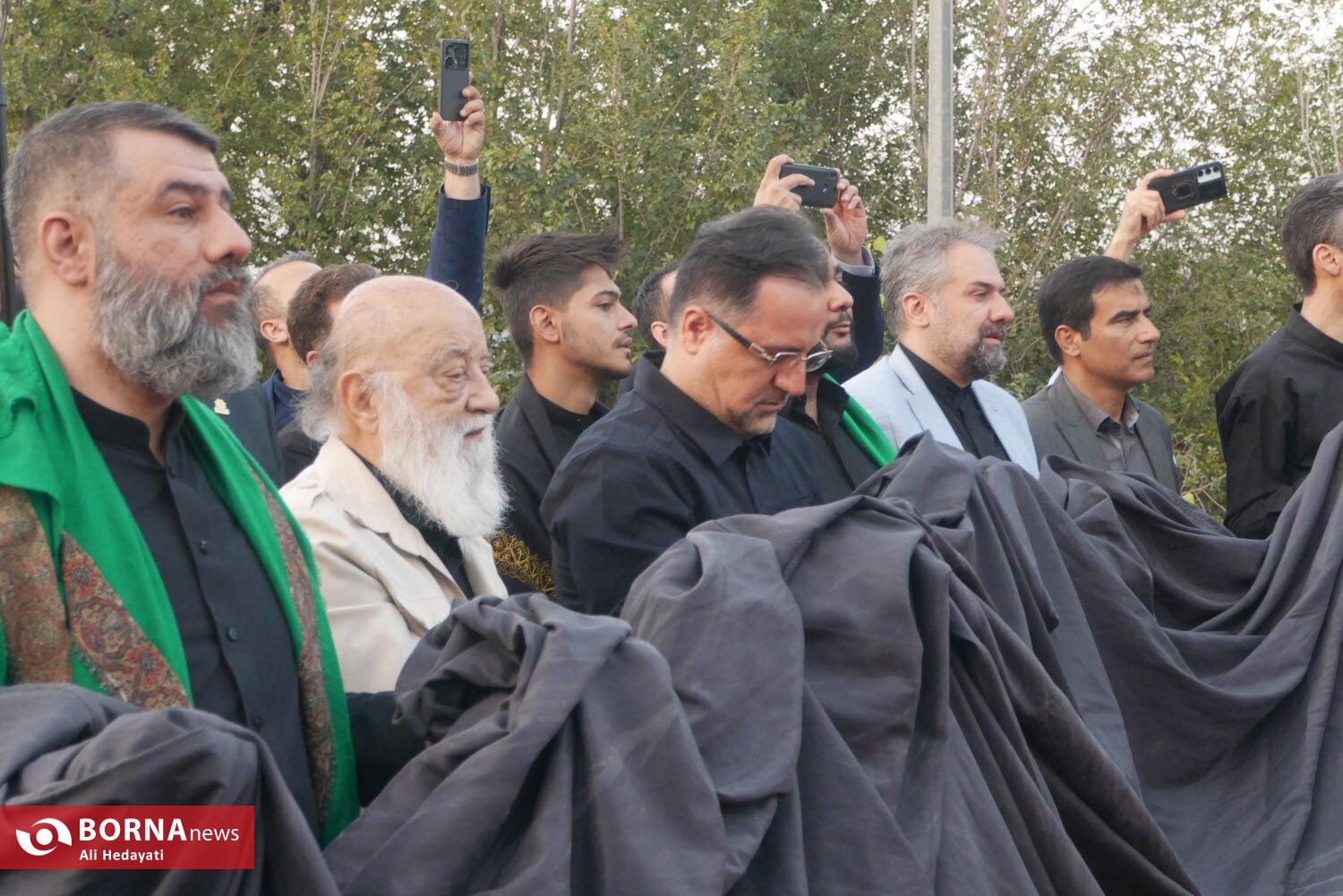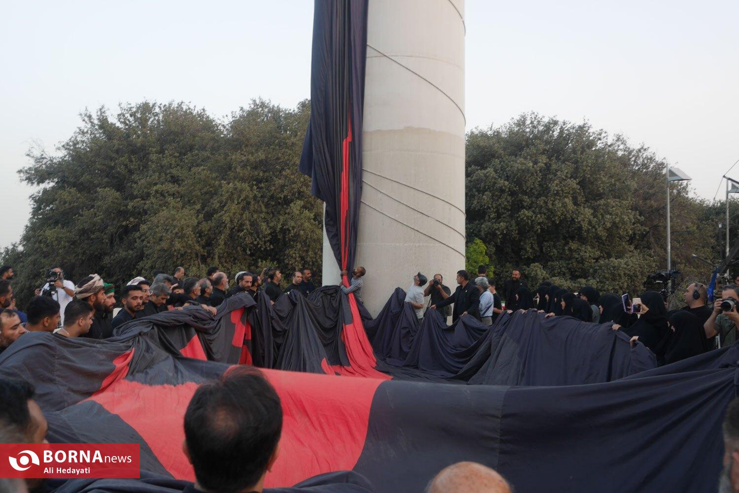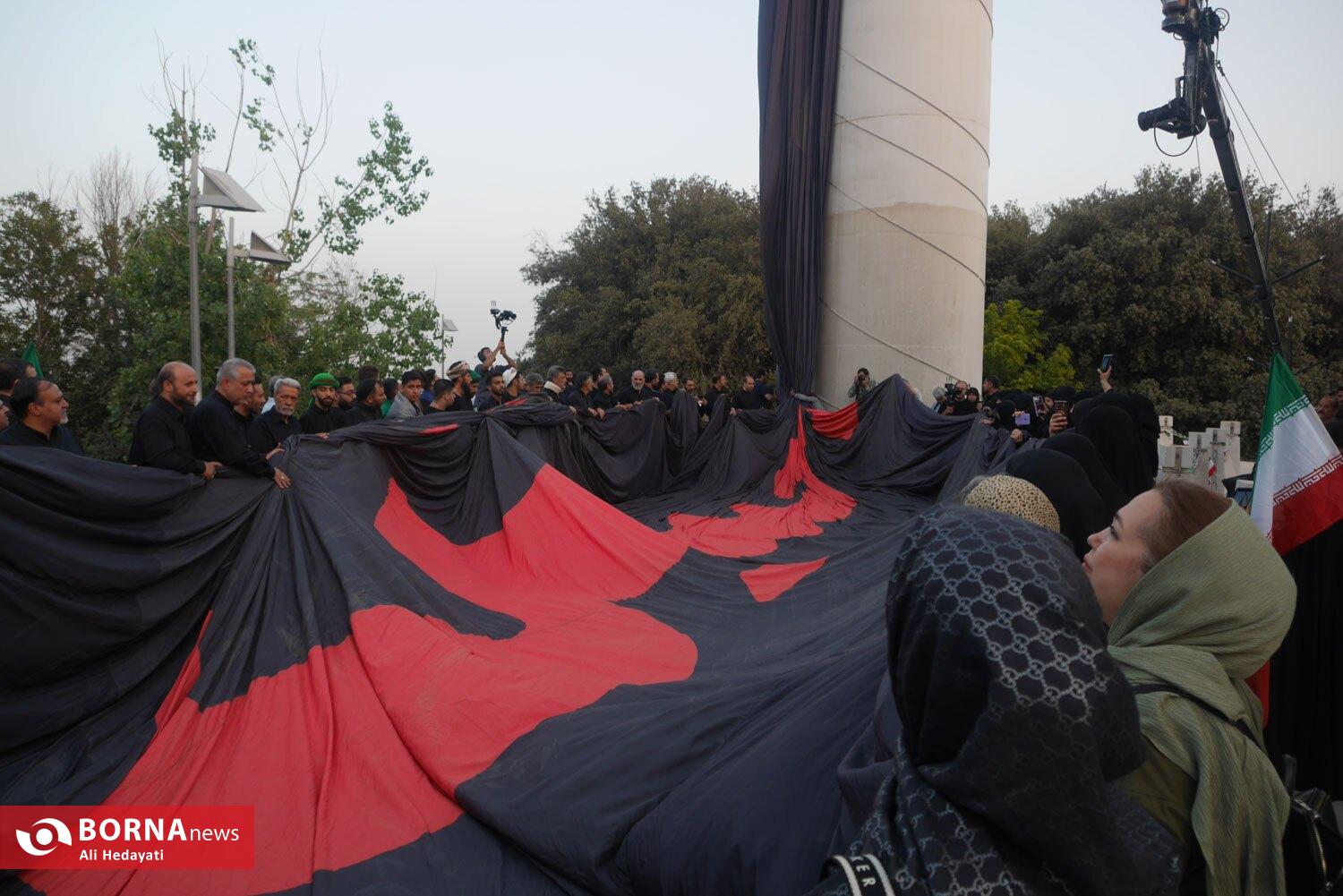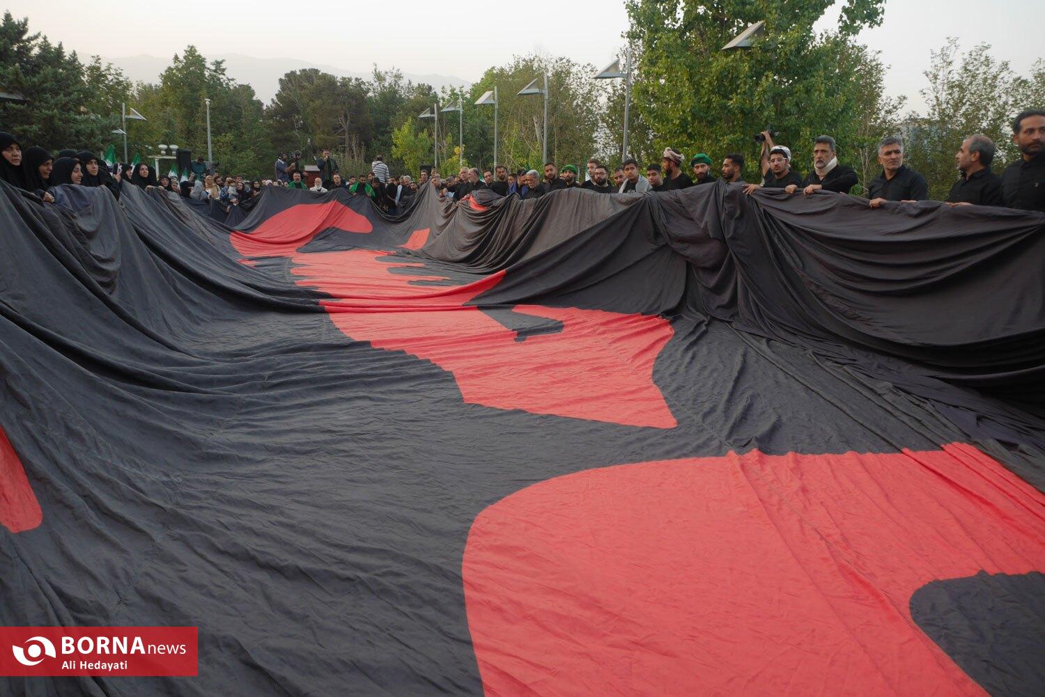 مراسم اهتزار بزرگترین پرچم عزای حسینی در جهان، عصر امروز (پنچشنبه ۵ تیر ۱۴۰۴) با حضور هیات مختلف و مسئولین شهری بر بلندای پایتخت ایران برافراشته شد.