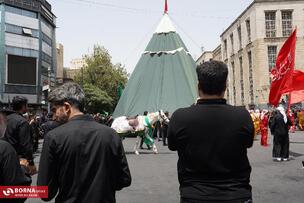 همزمان با عاشورای حسینی، مراسم عزاداری و خیمه سوزان ظهر عاشورا در چهارراه گلوبندک تهران برگزار شد.
