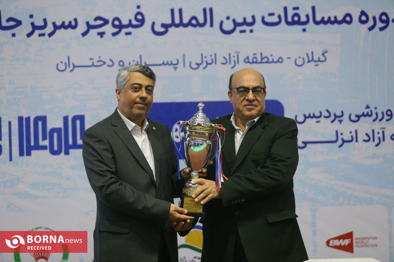 به گزارش خبرگزاری برنا از گیلان ؛ مراسم اختتامیه دومین دوره مسابقات بین المللی فیوچر سریز جام کاسپین در منطقه آزاد با حضور جبار کوچکی نژاد نماینده مردم رشت در مجلس شورای اسلامی، محمدرضا پوریا ریاست فدراسیون جمهوری اسلامی ایران، محمد بابایی مشاور فرهنگی وزارت ورزش و جوانان، فریبا مددی نائب رییس فدراسیون، فرشاد نصرتی دبیر فدراسیون، مجید فاتحی ریاست هیات بدمینتون استان گیلان و جمعی از معاونین منطقه آزاد انزلی و مسئولین استانی با معرفی نفرات برتر برگزار شد.