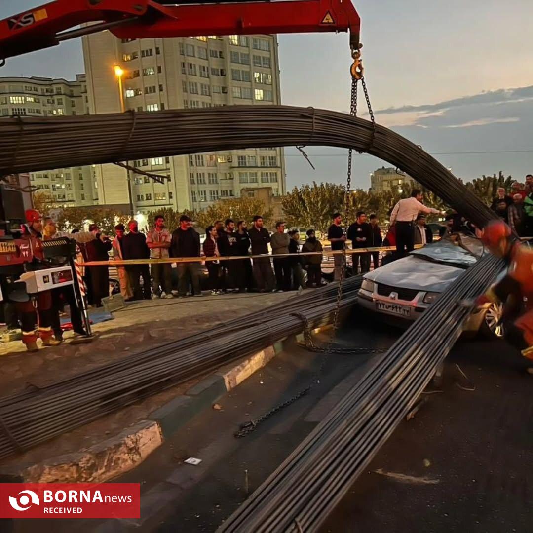 سقوط بار میلگرد روی سمند در بلوار کوهسار