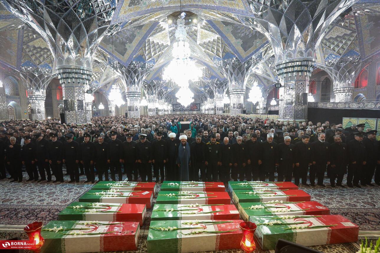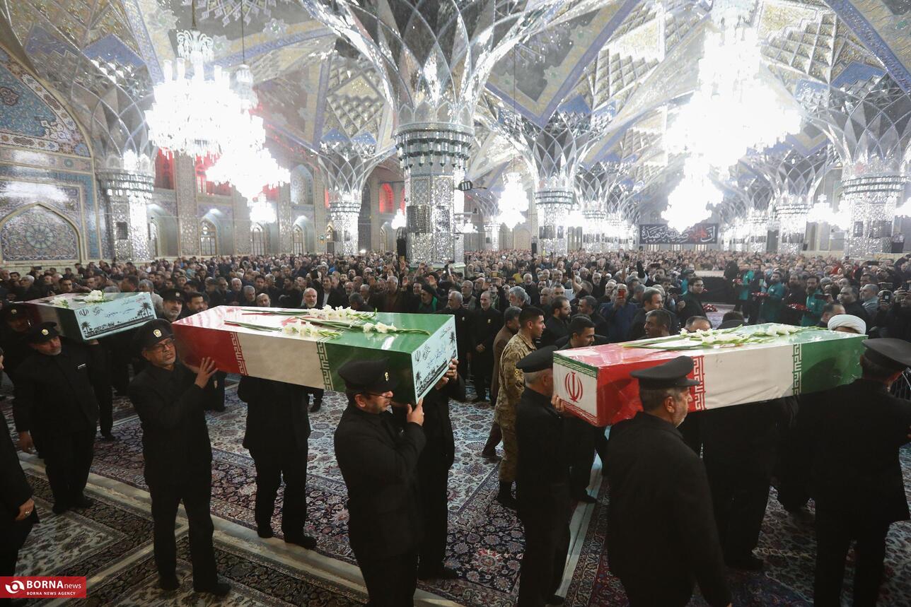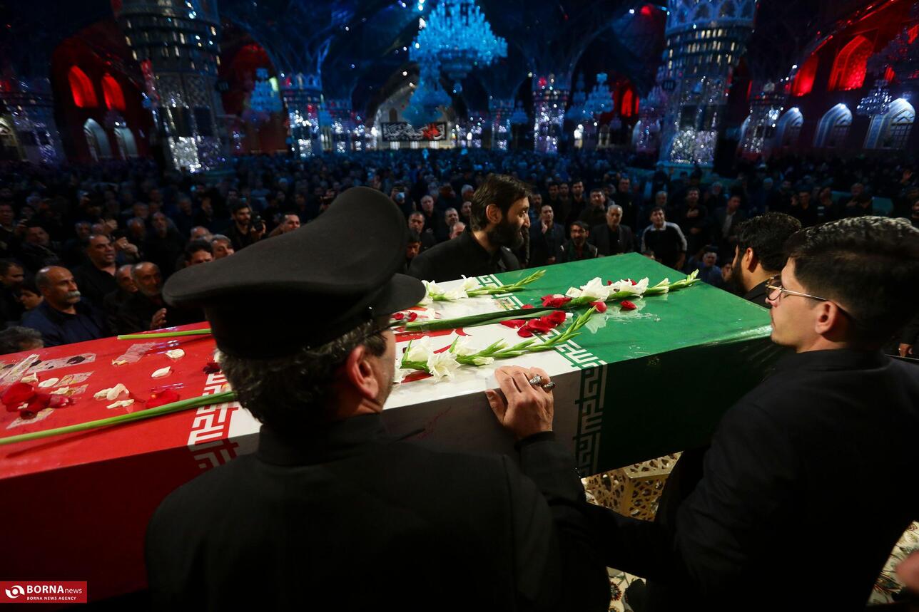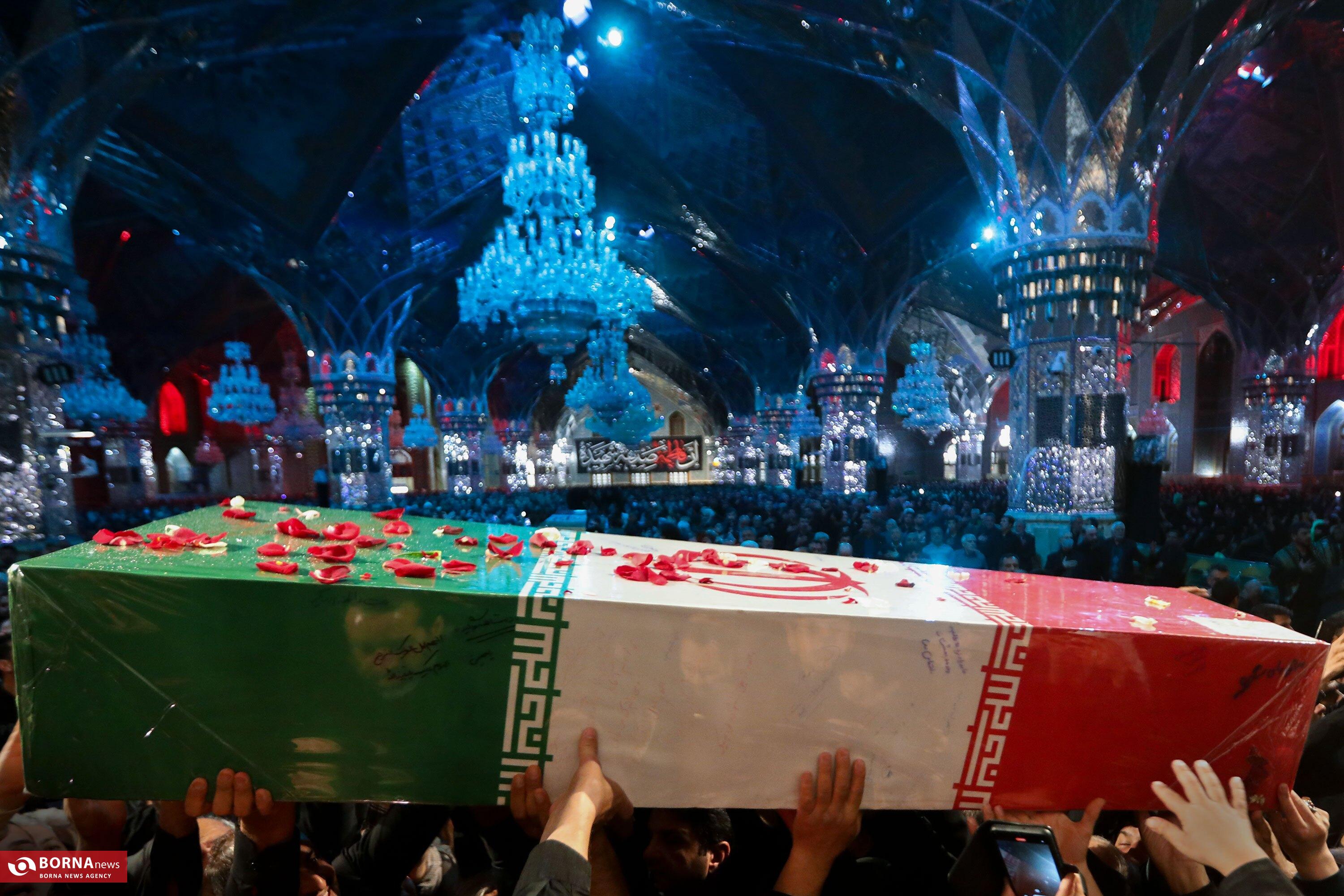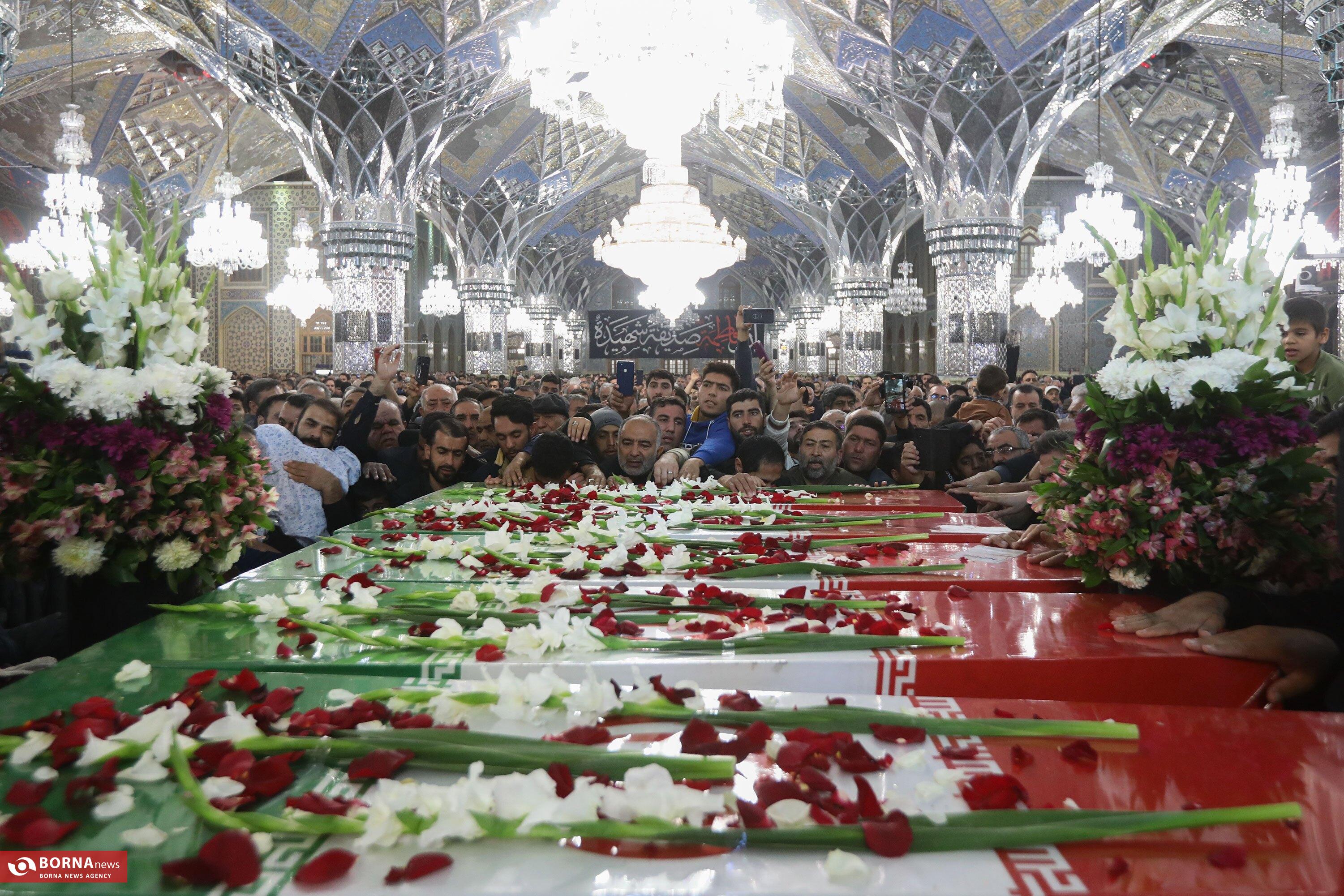 وداع با پیکر ۱۲ شهید گمنام دفاع مقدس در مشهد + عکس