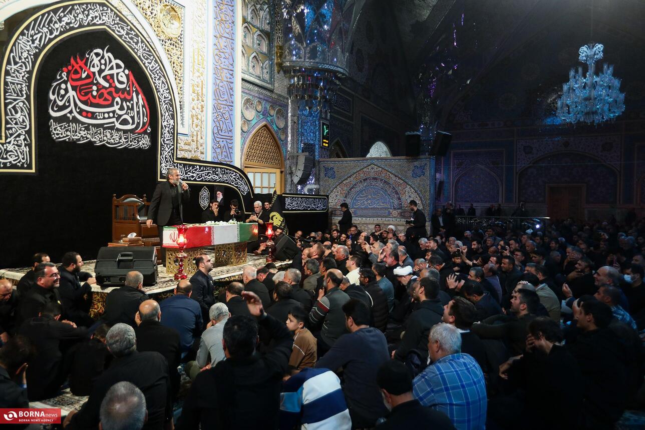 برنا- گروه استانها: مراسم وداع با پیکر مطهر ۱۲ شهید گمنام دفاع مقدس، شامگاه یکشنبه ۲ آذر ۱۴۰۳ همزمان با شب شهادت حضرت زهرا(س)، در رواق امام خمینی(ره) حرم مطهر رضوی برگزار شد.