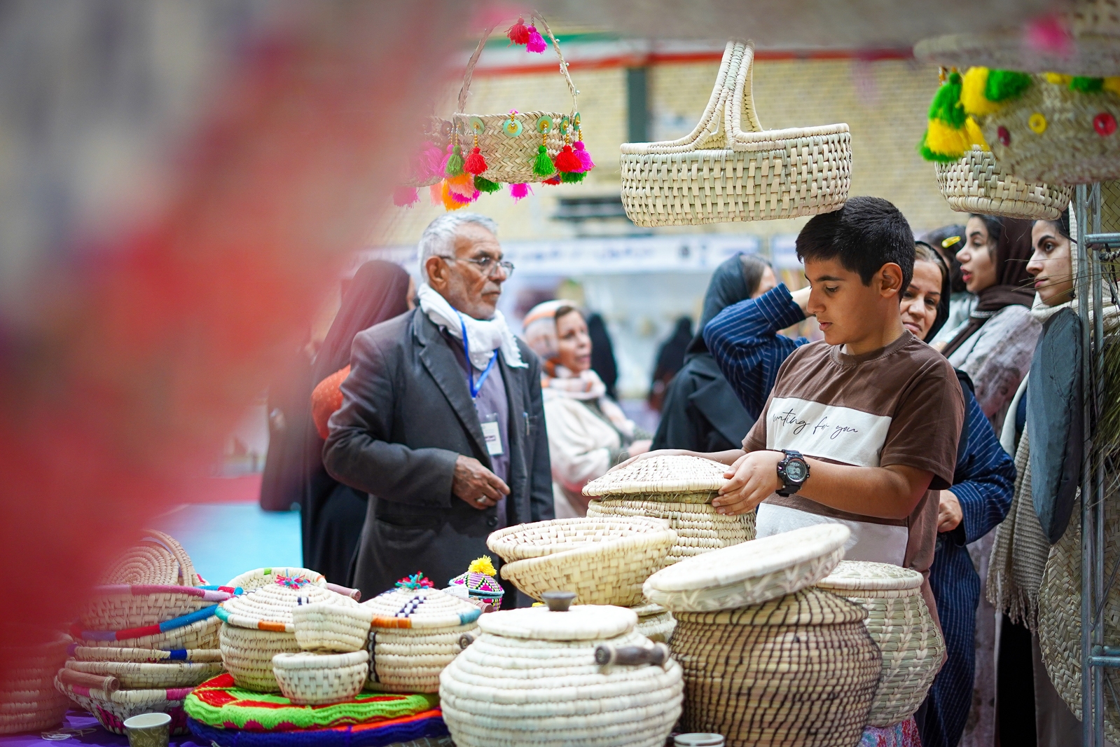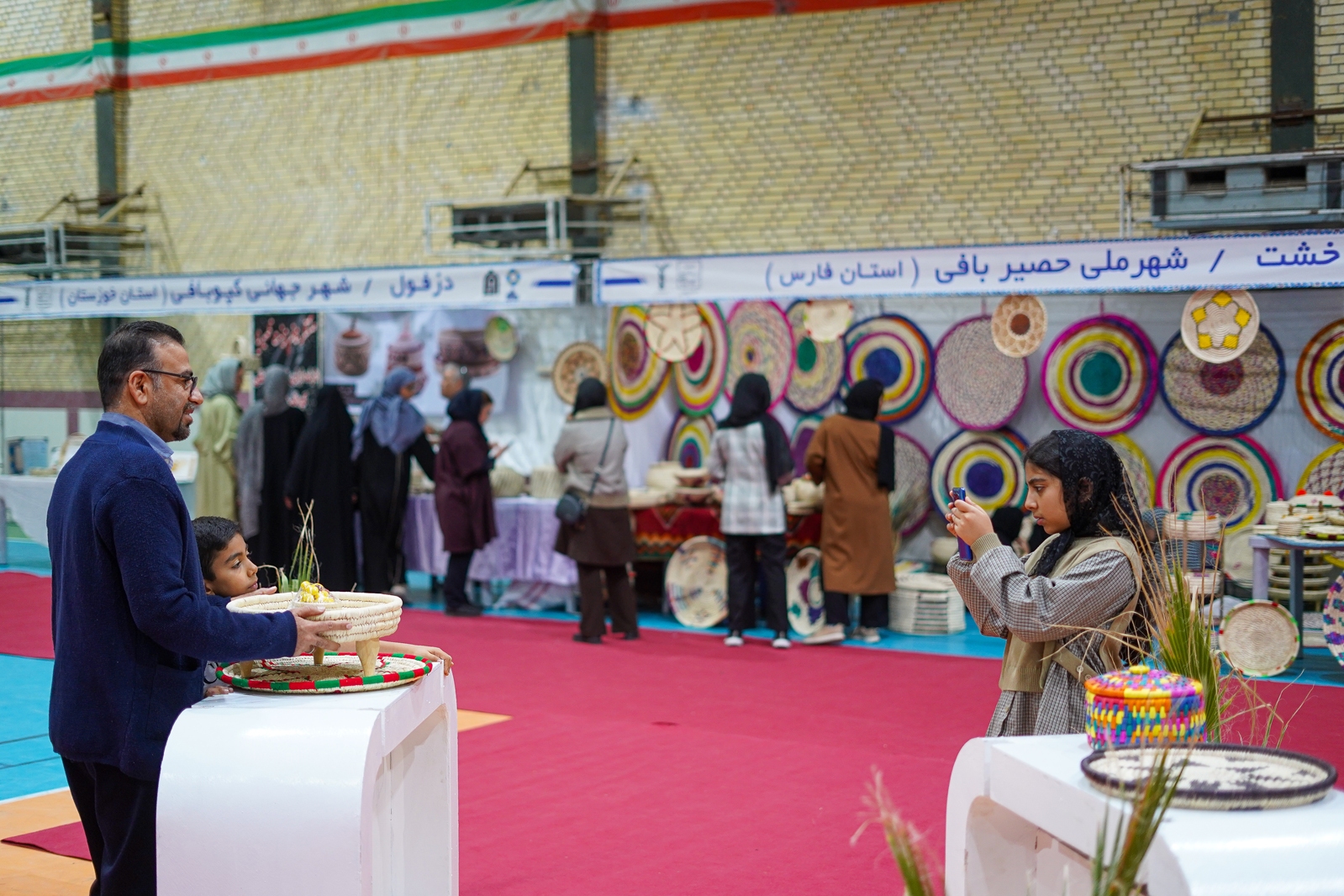 نخستین نمایشگاه تخصصی حصیربافی با محصولات درخت نخل در شهرستان مهر استان فارس برپا شد.