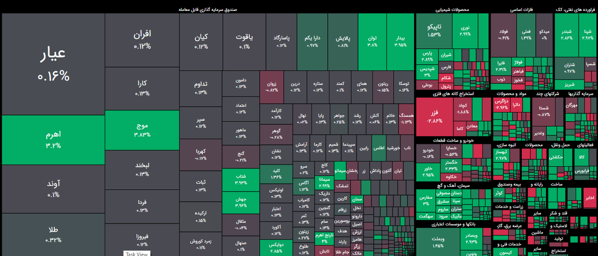 شاخص فرابورس ۱۳۶ واحد مثبت شد و به تراز ۳۲ هزار و ۶۰۷ واحد رشد کرد.