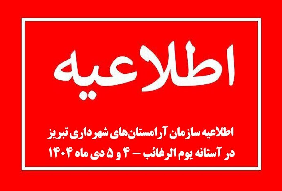 اطلاعیه سازمان آرامستان‌های شهرداری تبریز در آستانه یوم الرغائب