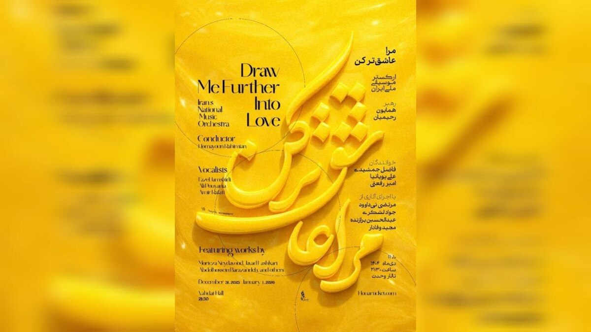 برنا- گروه فرهنگ و هنر: ارکستر موسیقی ملی ایران به رهبری همایون رحیمیان، نخستین اجرای رسمی خود در فصل زمستان را با کنسرتی با عنوان مرا عاشقتر کن... طی دو شب، ۱۰ و ۱۱ دیماه ۱۴۰۴، در تالار وحدت روی صحنه میبرد.