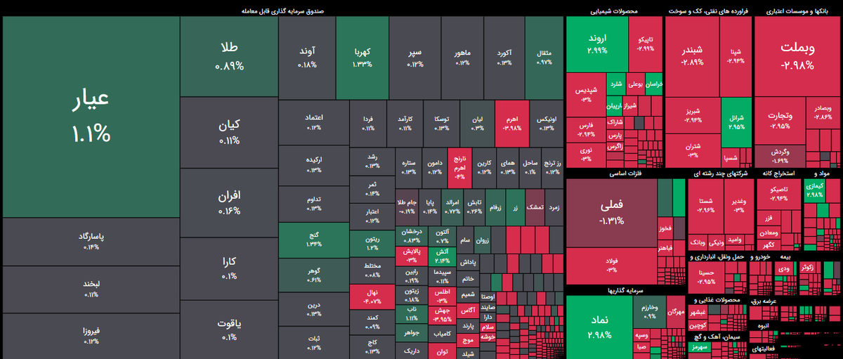 در این روز نمادهای وبملت، فارس، فملی و فولاد بیشترین تاثیر منفی را بر شاخص کل بازار سرمایه داشتند و عامل رشد بازار سرمایه شدند.