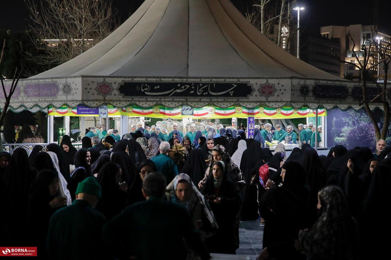 مواکب پذیرایی از زائران بارگاه منور رضوی در شب نیمه شعبان + گزارش تصویری