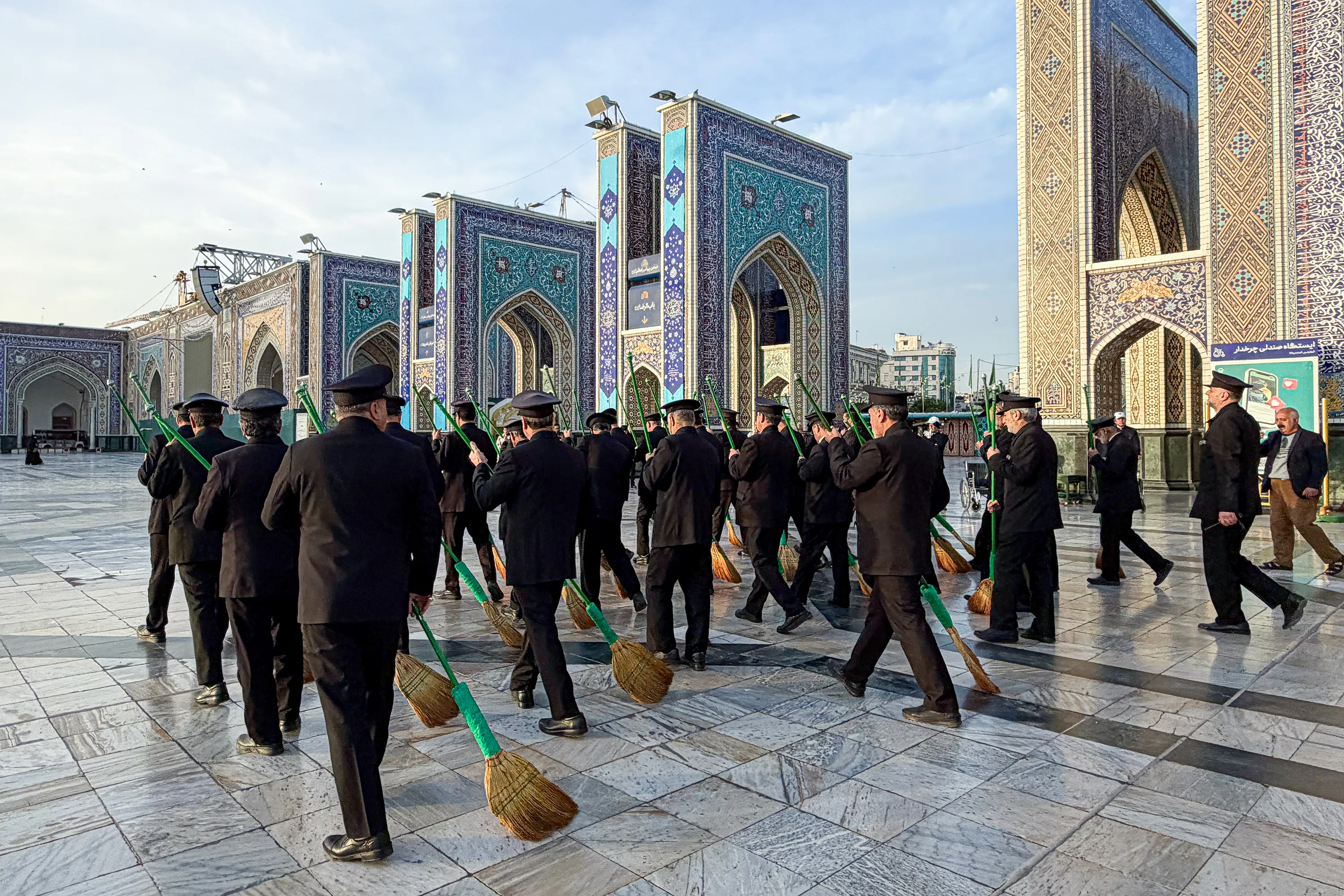 برنا- گروه استان‌ها: آیین تعویض شیفت خدام حرم مطهر رضوی در دهه کرامت، هر روز صبح حدود یک ساعت بعد از طلوع آفتاب، از صحن پیامبر اعظم(ص) با ستایش پروردگار و ثنای ائمه اطهار(ع) شروع شده و پس از آن دربانان به صورت گروهی صحن‌های متبرک حرم را جارو می‌کنند.