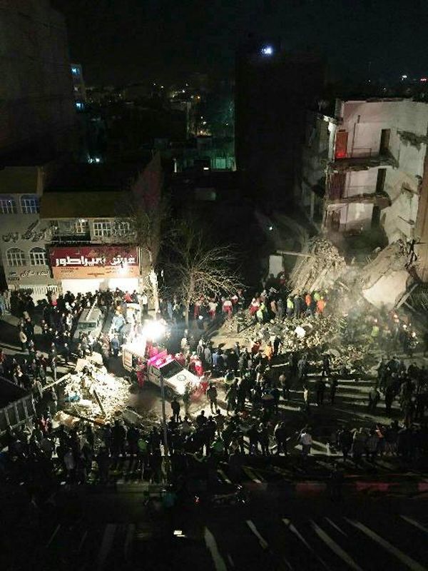 به دلیل حجم بالای تخریب ساختمان نیروهای کمکی در همان ساعت اولیه از شهر ری ، پاکدشت ، پیشوا به محل اعزام شدند و چندین قلاده سگ زنده یاب نیز توسط هلال احمر و نیروی زمینی ازتش برای یافتن اثاری از افراد زیر اوار تلاش کردند.