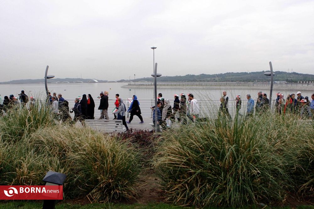 پنجمین همایش بزرگ پیاده روی خانوادگی بازنشستگان شهرداری تهران در حاشیه دریاچه خلیج فارس غرب تهران صبح امروز پنجشنبه برگزار شد.