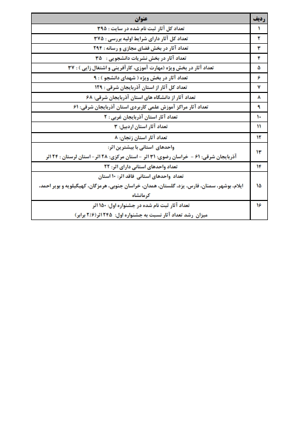 گزارش آثار دومین جشنواره فضای مجازی ، رسانه و نشریات دانشجویی به شرح ذیل می باشد: