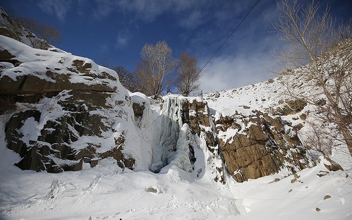 مع انخفاض درجات الحرارة في همدان ووصولها إلى 12 درجة مئوية تحت الصفر، تجمد شلال كنجنامه في المدينة همدان.