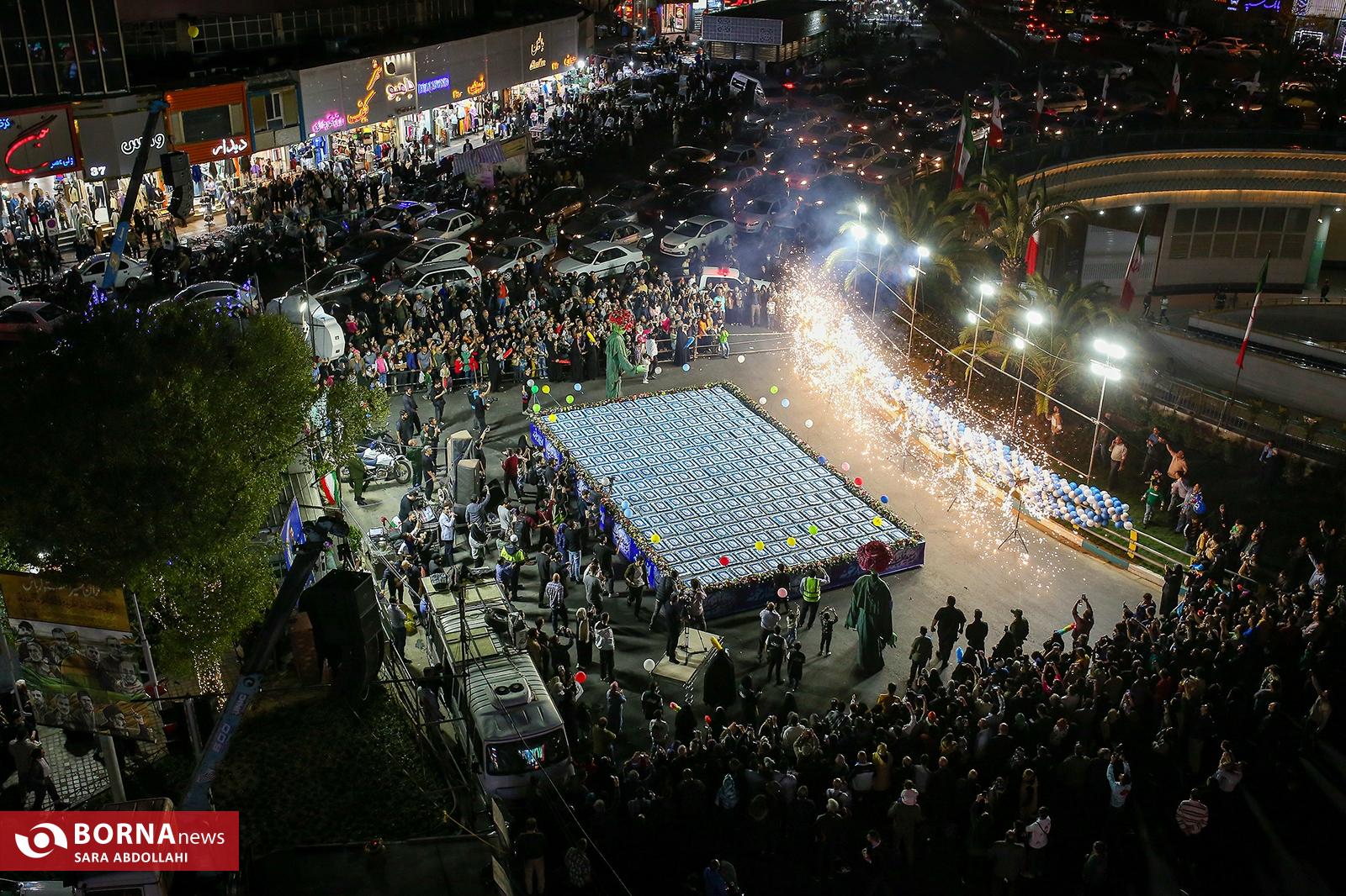 در آخرین شب از رویداد فرهنگی و اجتماعی افطارخونه در بلوار کشاورز تهران ،که به عنوان یکی از ویژهترین جشنوارههای فرهنگی ماه رمضان، فضایی گرم و دلنشین در قلب پایتخت ایجاد کرده ،بزرگترین نورافشانی کشور در میدان ولیعصر (عج) برگزار و کیک سهتنی بین حاضرین توزیع شد.