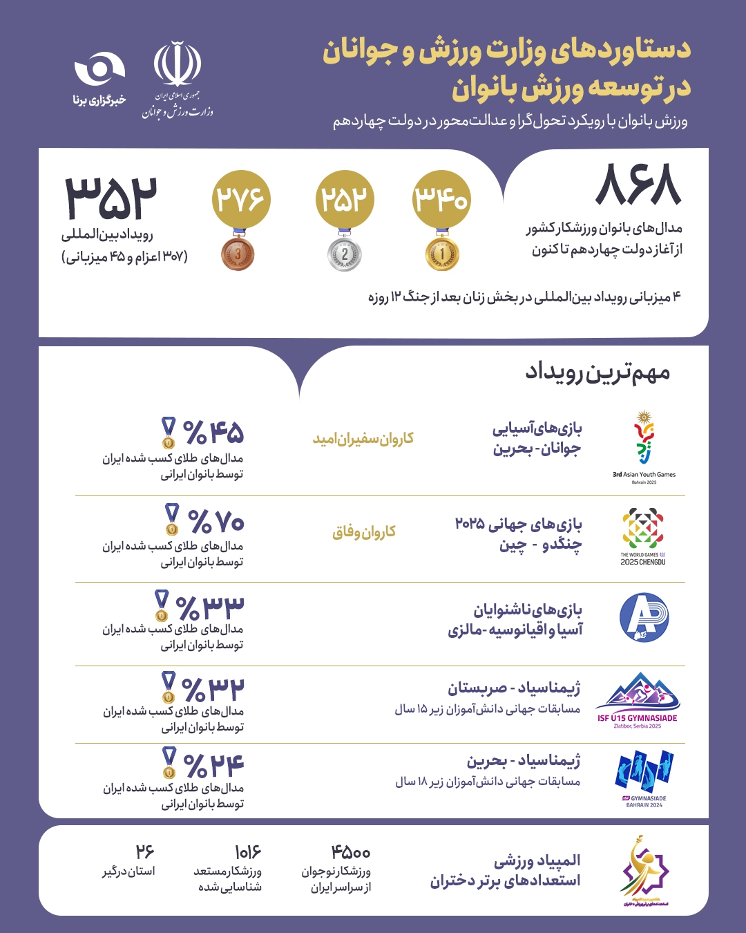 اینفوبرنا/ دستاوردهای وزارت ورزش و جوانان در توسعه ورزش بانوان