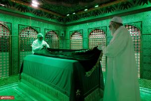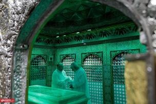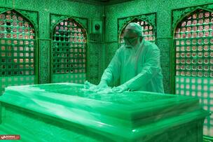 نماهایی زیبا از مراسم غبارروبی ضریح مطهر امام رضا(ع) با حضور بانوان + عکس