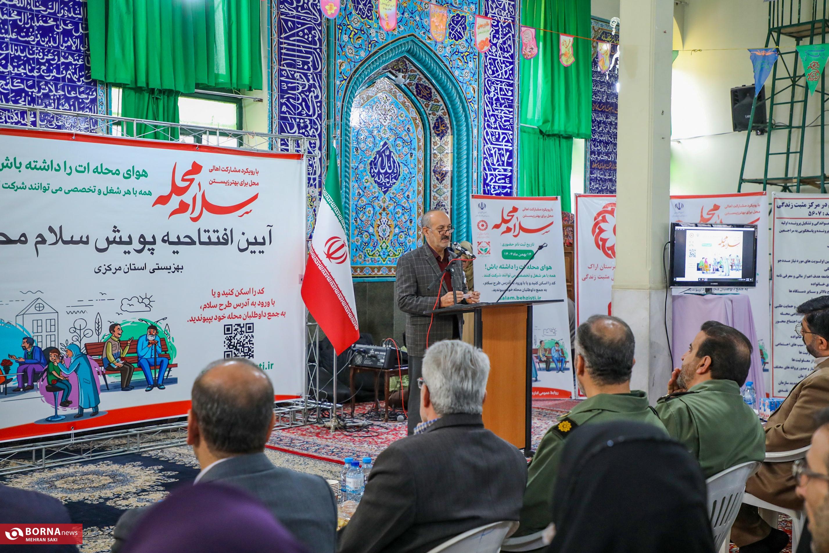 برنا- گروه استانها: آیین افتتاح پویش سلام محله به همت اداره کل بهزیستی استان مرکزی با شعار هوای محله ات را داشته باش با حضور مدیران ارشد استان و دستگاه های مرتبط با حوزه اجتماعی افتتاح شد. در این پویش همه شهروندان با هر شغل و تخصصی می توانند شرکت کنند. این طرح همزمان با سراسر کشور با رویکرد مشارکت اهالی محل در مسجد امام حسن (ع) شهرک ولیعصر کلانشهر اراک افتتاح شد.